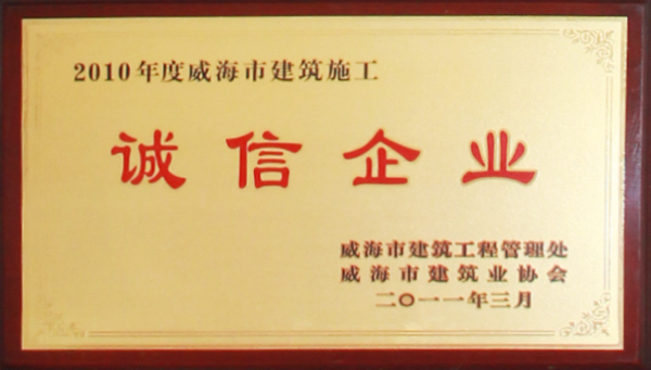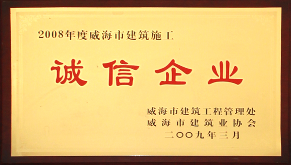 公司連續(xù)八年榮獲威海市“誠(chéng)信開(kāi)發(fā)企業(yè)”、“建筑施工誠(chéng)信企業(yè)”,連續(xù)九年被評(píng)為威海市級(jí)“守合同重信用企業(yè)”,多次被評(píng)為威海市“市級(jí)文明單位”、“質(zhì)量管理先進(jìn)企業(yè)”、 “安全管理先進(jìn)企業(yè)”,乳山市“優(yōu)秀企業(yè)”、“先進(jìn)民營(yíng)企業(yè)”、“納稅明星企業(yè)”,在社會(huì)上逐步樹(shù)立了誠(chéng)信、穩(wěn)健的企業(yè)形象。