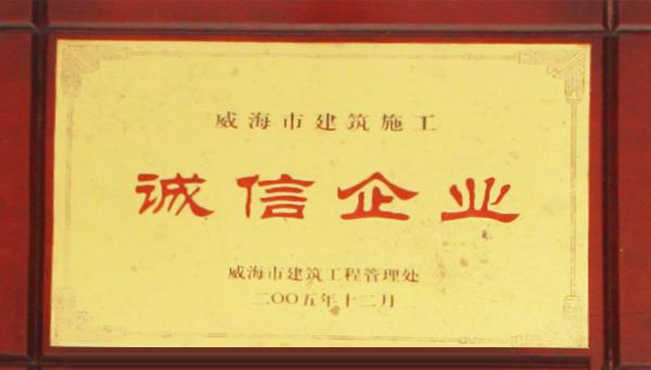 公司連續(xù)八年榮獲威海市“誠(chéng)信開(kāi)發(fā)企業(yè)”、“建筑施工誠(chéng)信企業(yè)”,連續(xù)九年被評(píng)為威海市級(jí)“守合同重信用企業(yè)”,多次被評(píng)為威海市“市級(jí)文明單位”、“質(zhì)量管理先進(jìn)企業(yè)”、 “安全管理先進(jìn)企業(yè)”,乳山市“優(yōu)秀企業(yè)”、“先進(jìn)民營(yíng)企業(yè)”、“納稅明星企業(yè)”,在社會(huì)上逐步樹(shù)立了誠(chéng)信、穩(wěn)健的企業(yè)形象。